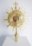 Монстранция аналог православной дароносицы, которую используют католические священники для почитания святых даров вне литургии. Когда то давно ее применяли как место хранения мощей святых. Первые монстранции были цилиндрической формы и изготовлялись из стекла. Позднее появились монстранции в форме звезд, храмов.