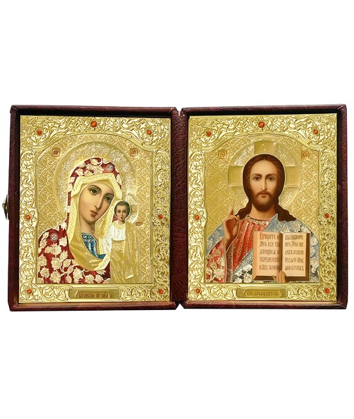 • Кожаный складень не вынимающийся лик 15х18 Софрино цветная одежда К-21-2