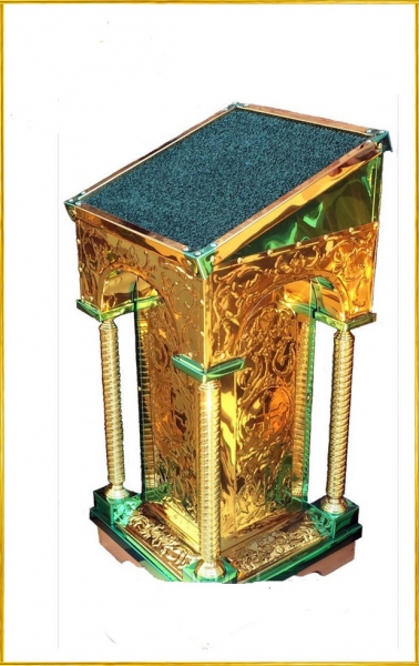 розміри (Д х Ш х В): 55 х 55 х 105 см; чеканка; метал - булат (нержавіюча сталь з напиленням нітриду титану); нерозбірний; кришка - оксамит (меблева тканина); основа аналою: ДСП - 16 мм