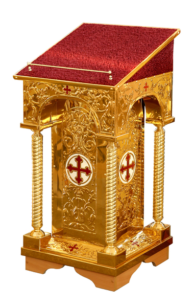 Размер: 50*50*105 см. Булат, чеканка, неразборный.Основа аналоя - ДСП - 16 мм. Металл - булат (нержавеющая сталь с напылением нитрид титана). Крышка - бархат (мебельная ткань)Нет описания