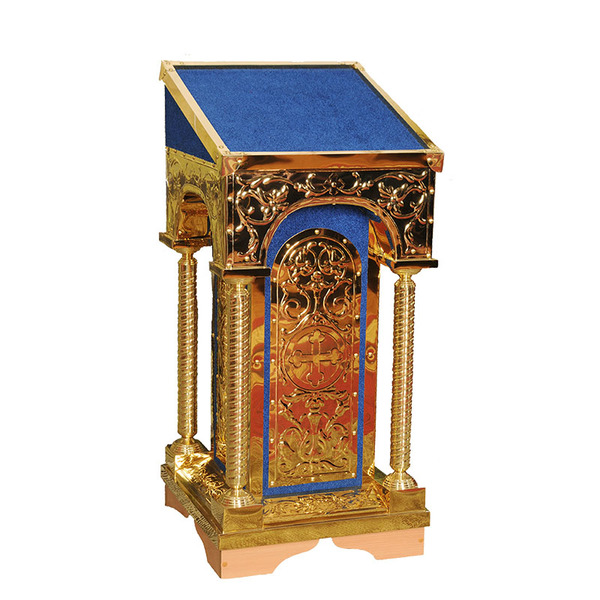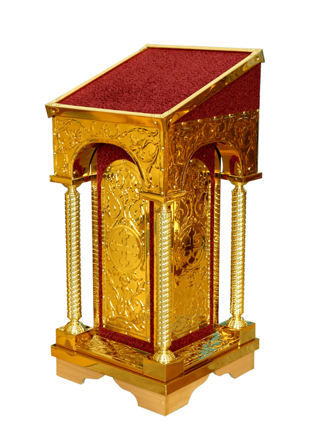 Размер: 50*50*105 см. Булат, чеканка, неразборный.Основа аналоя - ДСП - 16 мм. Металл - булат (нержавеющая сталь с напылением нитрид титана). Крышка - бархат (мебельная ткань)Нет описания