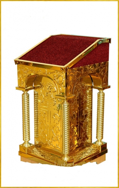 розміри (Д х Ш х В): 55 х 55 х 105 см; чеканка; метал — булат (нержавіюча сталь з напиленням нітриду титану); нерозбірний; кришка - оксамит (меблева тканина); основа аналою: ДСП - 16 ммНет описания