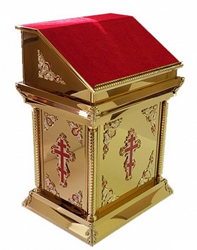 Размер: 60*80*112 см. Булат, литье, разборный.Основа аналоя - влагостойкая фанера. Металл - булат (нержавеющая сталь с напылением нитрид титана). Крышка - бархат (мебельная ткань)