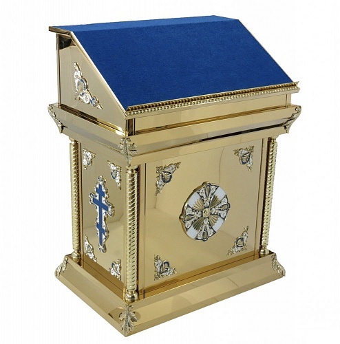Размер: 60*90*112 см. Булат, литье, разборный.Основа аналоя - влагостойкая фанера. Металл - булат (нержавеющая сталь с напылением нитрид титана). Крышка - бархат (мебельная ткань)Нет описания