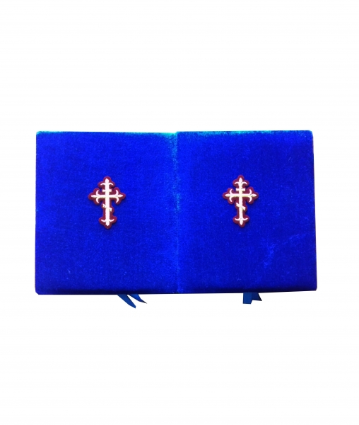 • Бархатный складень четверной лик 15х18 Софрино узор Б-214-4-С с золотым окладом, замочком и вышитым крестиком по средине, 72х21х6 см