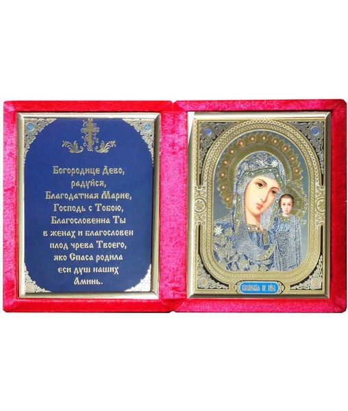Бархатный складень с молитвой, вынимающийся лик 10х12 Софрино узор Б-22-М-2-К вынимающийся с молдингом, замочком и вышитым крестиком по средине, 26х15х3 см