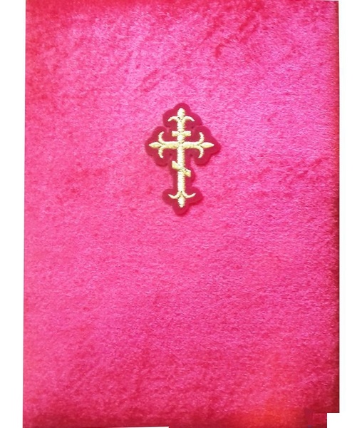 • Бархатный складень с молитвой, вынимающийся лик 10х12 Софрино узор Б-22-М-2-К вынимающийся с молдингом, замочком и вышитым крестиком по средине, 26х15х3 см
