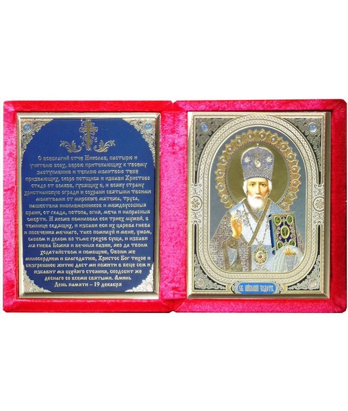Бархатный складень с молитвой, вынимающийся лик 10х12 Софрино узор Б-22-М-3-К вынимающийся с молдингом, замочком и вышитым крестиком по средине, 26х15х3 см