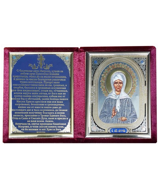Бархатный складень с молитвой, вынимающийся лик 10х12 Софрино узор Б-22-М-6-Б вынимающийся с молдингом, замочком и вышитым крестиком по средине, 26х15х3 см