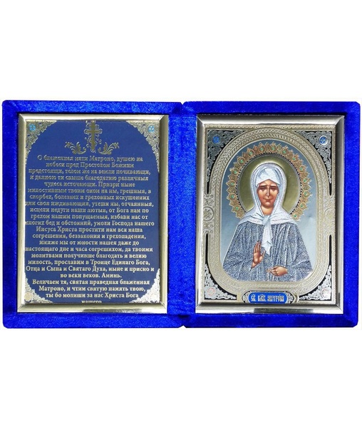 Бархатный складень с молитвой, вынимающийся лик 10х12 Софрино узор Б-22-М-6-С вынимающийся с молдингом, замочком и вышитым крестиком по средине, 26х15х3 см
