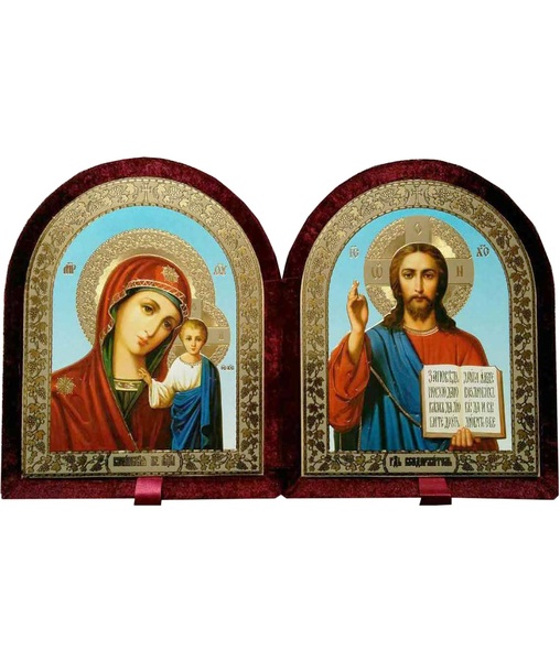 Бархатный складень вынимающийся лик 15х18 Софрино арочный Б-12-В-1-Б 34х20х5 см