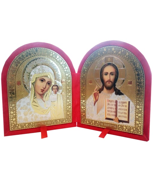 Бархатный складень вынимающийся лик 15х18 Софрино белая одежда Б-12-В-2-К 34х20х5 см