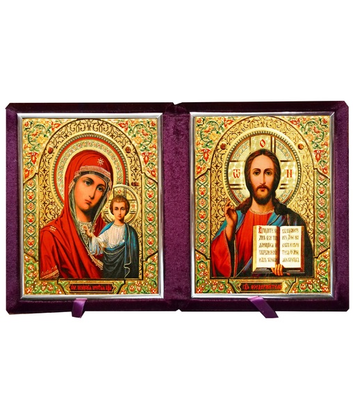 Бархатный складень, вынимающийся лик 20х24 Софрино эмаль Б-2024-ВМ-2Б вынимающийся, с замочком и вышитым крестиком, 46х27х6 см