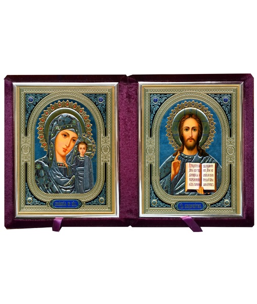 Бархатный складень, вынимающийся лик 20х24 Софрино узор Б-2024-ВМ-1Б вынимающийся, с замочком и вышитым крестиком, 46х27х6 см