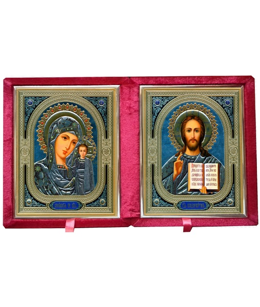 Бархатный складень, вынимающийся лик 20х24 Софрино узор Б-2024-ВМ-1К вынимающийся, с замочком и вышитым крестиком, 46х27х6 см