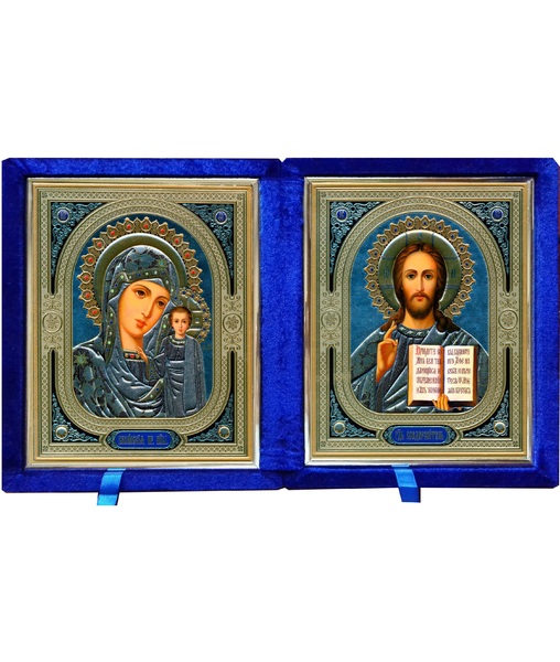 Бархатный складень, вынимающийся лик 20х24 Софрино узор Б-2024-ВМ-1С вынимающийся, с замочком и вышитым крестиком, 46х27х6 см