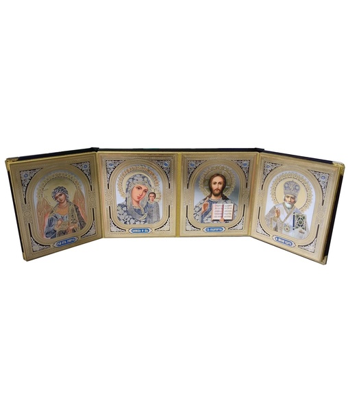 Четверник кожаная книжка, не вынимающийся лик 10х12 Софрино узор КН-224