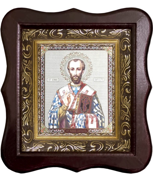 • Фигурный деревянный  киот размером 185х210х40 мм, в багетой рамке со стеклом с ОБЬЕМНЫМ -3 Д лик 10х12см