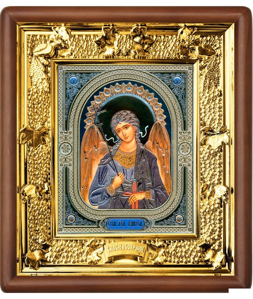 Икона Ангела Хранителя 31-П-4 24х27 см деревянный прямой киот, лик 15х18 Софрино узор, оклад (риза) золото Количество шт. в ящике: 10