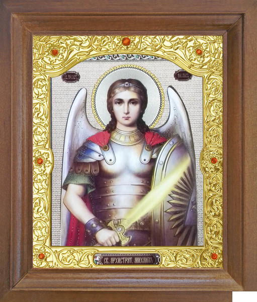 Икона Архангела Михаила 26-П-180 17х20 см деревянный прямой киот, лик 15х18, оклад (риза) золото