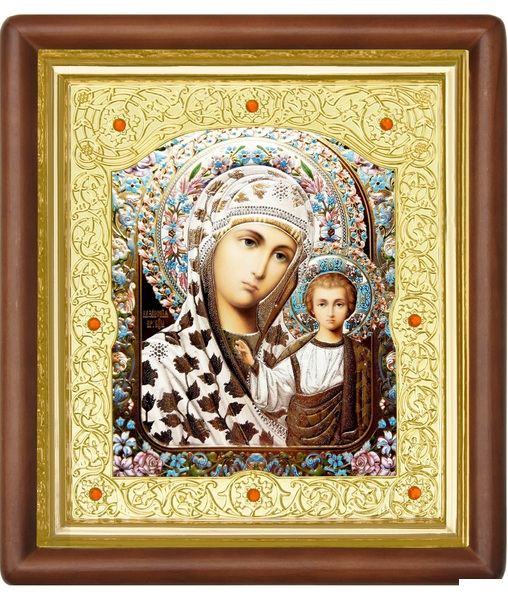 Икона Богородицы Казанской 20-П-188 24х27 см деревянный прямой киот, лик 15х18 эмаль №2, оклад (риза) золото
