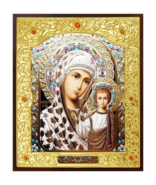 Икона Богородицы Казанской 22-Д-316 в подарочной упаковке 11х13 см деревянный прямой киот на подставке, лик 10х12 эмаль №2, оклад (риза) золото