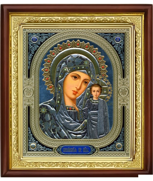 Икона Богородицы Казанской 23-П-88 25х29 см деревянный прямой киот, лик 20х24 Софрино узор, оклад (риза) золото