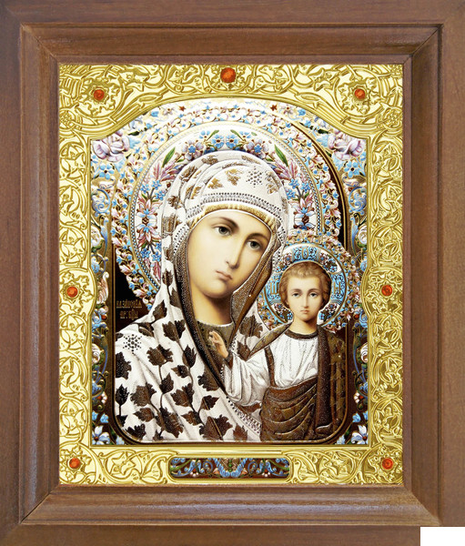 Икона Богородицы Казанской 26-П-188 17х20 см деревянный прямой киот, лик 15х18 эмаль №2, оклад (риза) золото
