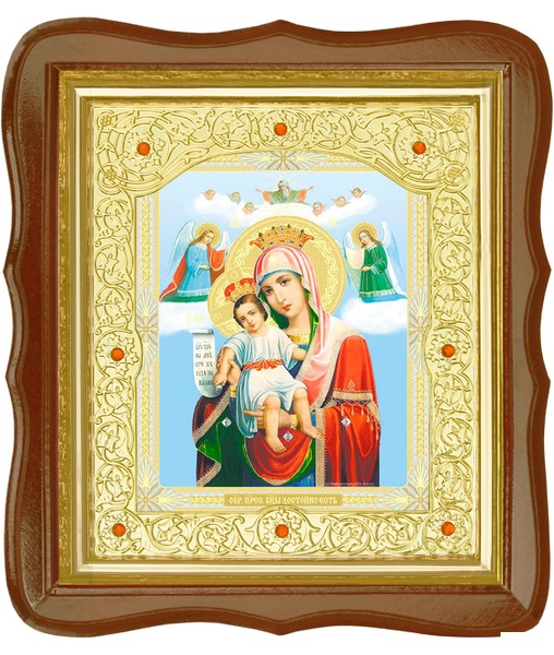 Икона Достойно Есть 20-ФС-33 26х29 см деревянный фигурный светлый киот, лик 15х18, оклад (риза) золото