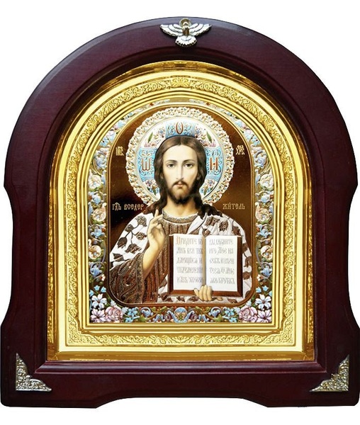 Икона Господь Иисус Христос 12-А-189 в подарочной упаковке 26х29 см деревянный арочный киот, лик 15х18 эмаль №2, оклад (риза) золото