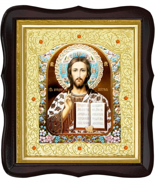 Икона Господь Иисус Христос 20-ФТ-189 26х29 см деревянный фигурный тёмный киот, лик 15х18 эмаль №2, оклад (риза) золото