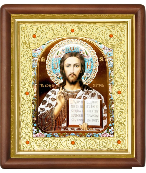 Икона Господь Иисус Христос 20-П-189 24х27 см деревянный прямой киот, лик 15х18 эмаль №2, оклад (риза) золото