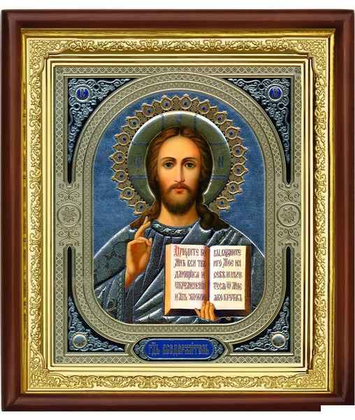 Икона Господь Иисус Христос 23-П-87 25х29 см деревянный прямой киот, лик 20х24 Софрино узор, оклад (риза) золото