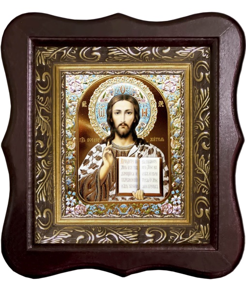 Икона Господь Иисус Христос Фигурный деревянный светлый киот размером 130х260х40 мм, со стеклом. Внутри багетная рамка с ОБЬЕМНЫМ -3 D лик 15х18см :