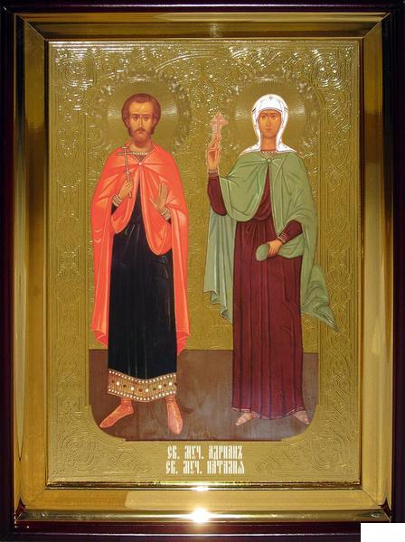 Под золотоИкона Храмовая полуростовую Адриан и Наталия в интернет магазине церковной утвари Правмир. Доставка, гарантия, лучшие цены! Купить Икона Храмовая полуростовую Адриан и Наталия или заказать изготовление в производителя.
