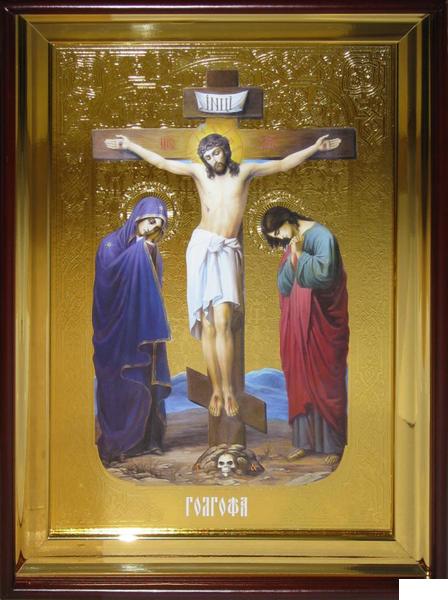 Под золотоИкона Храмовая полуростовую Голгофа в интернет магазине церковной утвари Правмир. Доставка, гарантия, лучшие цены! Купить Икона Храмовая полуростовую Голгофа или заказать изготовление в производителя.
