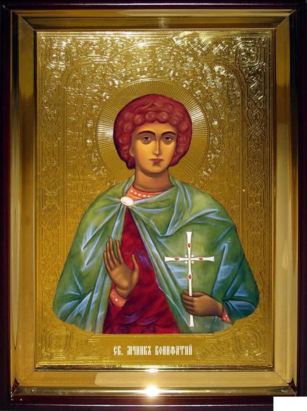 Под золотоИкона Храмовая полуростовую Вонифатий в интернет магазине церковной утвари Правмир. Доставка, гарантия, лучшие цены! Купить Икона Храмовая полуростовую Вонифатий или заказать изготовление в производителя.