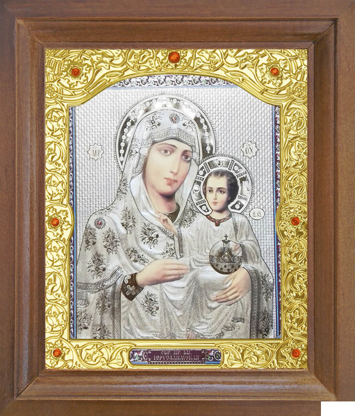 Икона Иерусалимская 26-П-179 17х20 см деревянный прямой киот, лик 15х18, оклад (риза) золото
