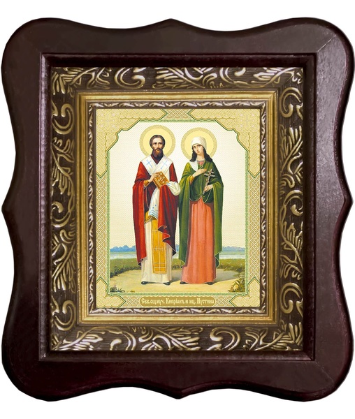 Икона Киприан и Иустина 1012-ФБ-35 17х20 см деревянный фигурный киот, лик 10х12, оклад (риза) золото