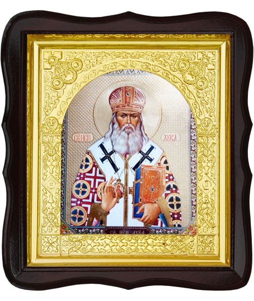 Икона Лука Крымский 17-ФТ-192 26х29 см деревянный фигурный тёмный киот, лик 15х18, оклад (риза) золото