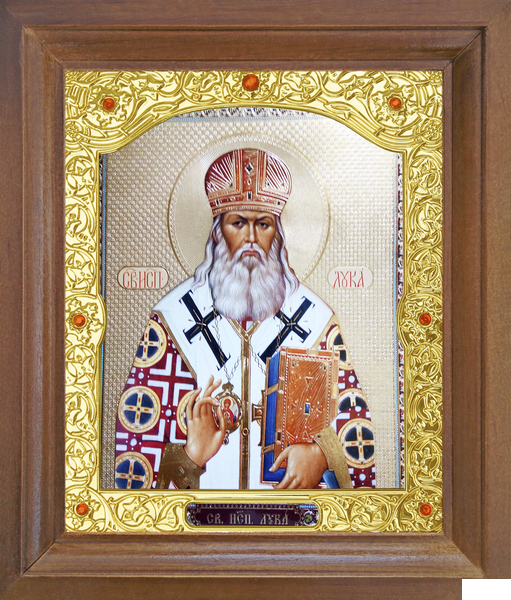 Икона Лука Крымский 26-П-192 17х20 см деревянный прямой киот, лик 15х18, оклад (риза) золото