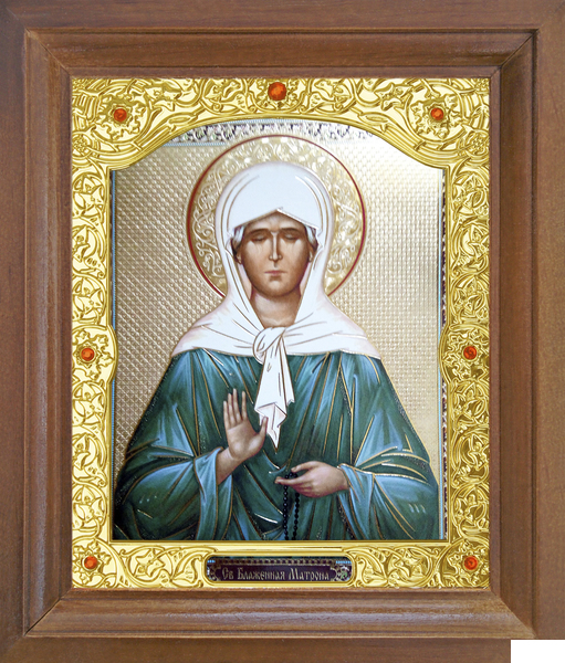 Икона Матрона Московская 26-П-191 17х20 см деревянный прямой киот, лик 15х18, оклад (риза) золото