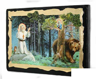 Икона Серафим Саровский на камне под старину
