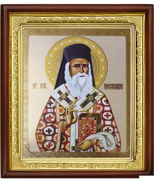 Икона Sf. ier. Nectarie (Нектарий) 23-П-84 25х29 см деревянный прямой киот, лик 20х24, оклад (риза) золото