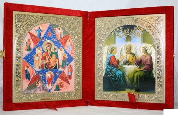 Икона-складень Божья Матерь Неопалимая Купина и Святая Троица (15*18 см)