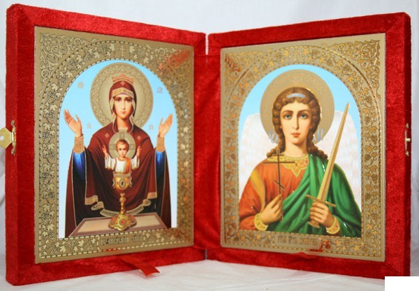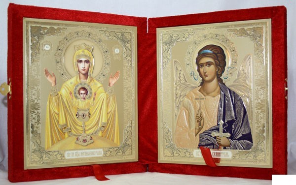 Икона-складень Божья Матерь Неупиваемая Чаша и Ангел Хранитель (15*18 см)