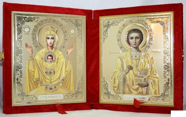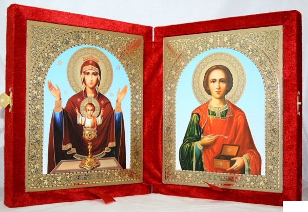 Икона-складень Божья Матерь Неупиваемая Чаша и Пантелеймон Целитель (15*18 см)