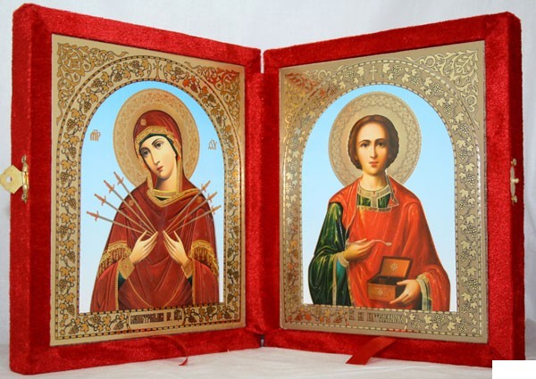 Икона-складень Божья Матерь Семистрельная и Пантелеймон Целитель (15*18 см)