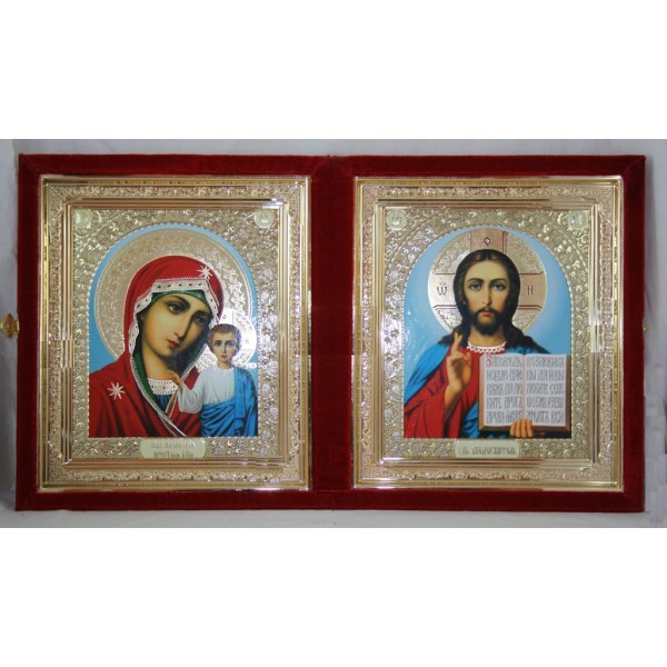 Икона-складень Спаситель и Божья Матерь Казанская (15*18 см)