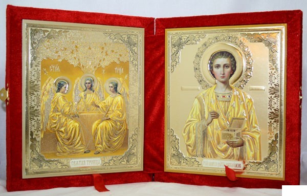 Икона-складень Святая Троица и Пантелеймон Целитель (15*18 см)